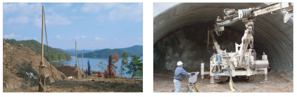 3) 투수계수효과 k=10-5cm/sec 이하이며 지수, 차수 ,침하방지, 지방 융기 방지, 파이핑, 히빙방지, 전단 강도를 증대 시켜줍니다. 터널 보강 그라우팅에 도 사용됩니다.