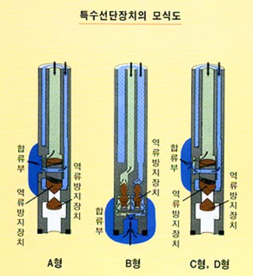 2) 주입 단면의 유효경은 D=1000~1200mm이며 토사, 암반을 포한한 모든 지반에서 시공가능합니다. 주 주입재료는 마이크로 시멘트와 실리카의 복합재, 특수규산 소다이며 배합비는 초미립 시멘트 복합실리카 200kg, 특수 규산 소다 200l입니다. Gel 강도는 28일후 20~40kg/cm2이며, Gel 타임은 급결 9~12초, 완결 60~90초 입니다. 주입방식은 A액과 B액이 1:1 입니다. 주입 압력은 3~5kg/cm2기준이며 최대 주입압은 15gk/cm2입니다.