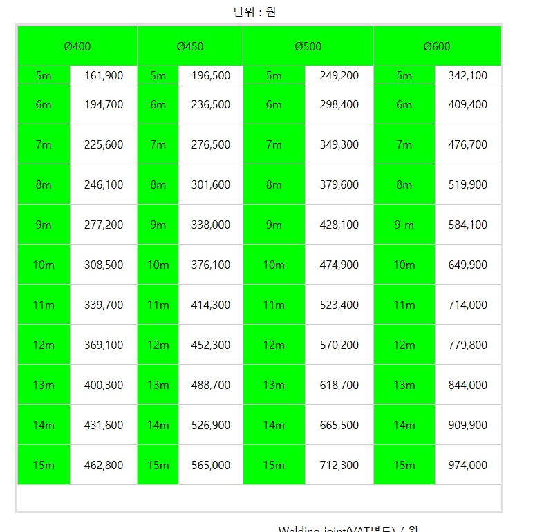 위의 단가표는 참고만 하시고 필요한 단가는 전화해서 문의를 해야합니다.