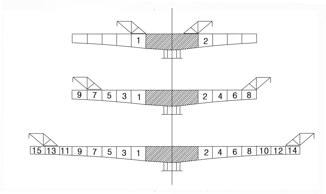 3) 불균형 Moment 처리 : 불균형 모멘트가 생기는 원인은 시공오차에 따라서 좌우측 세그먼트의 자중 차이가 생기거나 한쪽 세그먼트 Segment만 선시공시 또는 상방향의 풍하중이 작용할때 생깁니다. 이러한 불균형 모멘트를 예방하기 위해서는 Stay Cable을 통해 흔들림을 방지해주고 Temporary Prop (가벤트) 를 설치하거나 주부두를 Fixation Bar로 고정을 합니다. 즉, 진동과 흔들림에 최대한 방어를 해주는 것입니다.