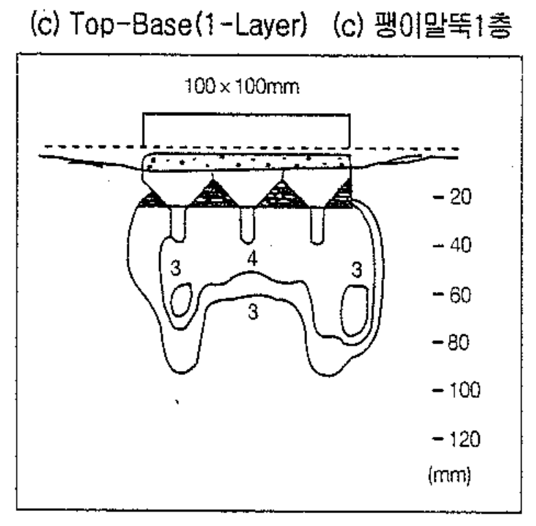 팽이말뚝기초공법은 팽이말뚝본체의 특징적인 형상과 말뚝사이 다짐된 채움쇄석이 응력집중을 방지하고 팽이말뚝의 말뚝부와 지반사이에 마찰저항이 발생하여 말뚝부 주변지반의 측방변형을 구속함으로, 지내력 즉, 지지력이 증대되고 침하량이 억제되는 효과가 발휘 됩니다. 무처리기초의 경우에는 중앙의 바로 아래에서만 강도증가가 나타나고 단부에서는 나타나지 않는데 이는 단부의 지반내에서 측방유동이 일어난 결과이며 이로 인하여 큰 침하가 발생하는 원인기 되기도 합니다. 팽이말뚝 기초 공법의 경우 오히려 기초지반의 단부에서 강도증가가 나타나고 있는데 이는 기초지반을 구속하는 효과가 일어나고 있다는 것이며 이로 인해 지반의 측방유동이 방지되고 침하가 억제됩니다.