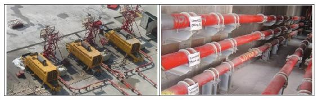 4) 펌핑장비에 가까운 배관일수록 마찰에 의한 마모가 많기에 두꺼운 배관 사용해 배관은 공사중 교체하지 않는것을 원칙으로해 계획해야합니다.