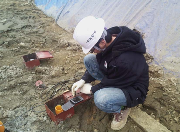 2) 층별 침하계 연약점성토의 심도별 압밀침하량 측정 및 지표면 침하량과의 비교분석합니다. 측정된 침하량을 이용해 지반의 층별 압밀정수를 추정합니다.
