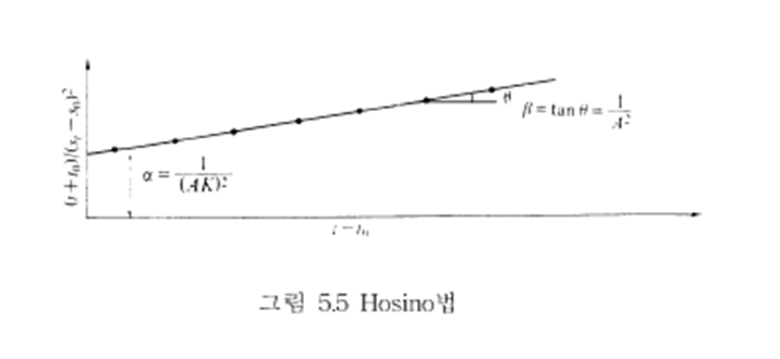 Hosino법은 침하속도가 시간의 평방근에 비례한다는 기본원리에 근거한 것으로 초기 실측침하량으로부터 장애 임의시간에서의 침하량과 최종침하량을 구하는 방법입니다.