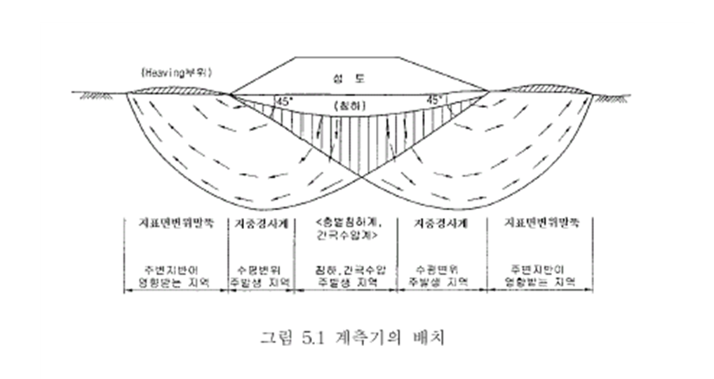 4) 지하수위계 : 성토에 의한 지하수위의 변화를 파악할수 있고 간극수압과 비교해 과잉간극수압의 소산정도 및 유효응력 증가량을 유추할수 있습니다.