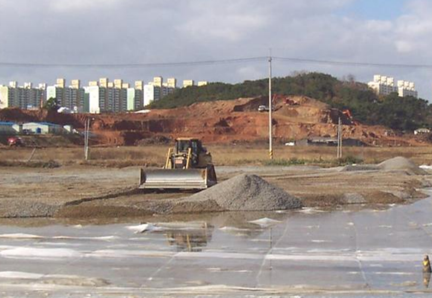 PBD 공법은 연직배수공법중 샌드드레인에 비해 경제적이고 시공 능률이 큽니다. 또한 PBD는 재질이 일정하고 공급이 안정적이며 국내의 경우는 PBD 자재를 구하는데 어렵지 않습니다. PBD 자재는 코어는 PE(Polyethylene)와 부직포 필터로 구성되어 있고 1Roll의 길이는 시공시 재료 연속성 확보를 위해 200 이상 입니다. PBD 공법을 시공시 PP MAT 공법과 선행하중 공법을 같이 시공하는 경우가 많은데요. PP MAT 공법은 지반은 분리, 보강, 투수 기능을 가지고 재질은 PET(Polyester)또는 PP(Polypropylene)의 재료로 이용됩니다. 또한 PBD공법이후에 선행하중 공법을 진행하게 되는데요. 계측 결과에 따라서 성토고와 성토 속도를 조절하며 시공하는것입니다. 위에서 누르는 선행하중 공법에 의해 연약지반이 눌리게 되고 배수 속도가 빨라지는 것입니다.