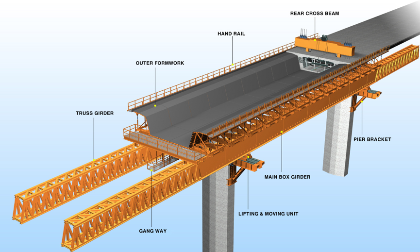 MSS 공법에는 상로식과 하로식이 있습니다. 상로식의 경우는 Main Girder가 상부로 이동하는 시스템이고 하로식은 Main Girder가 하부로 이동하는 시스템이라고 합니다. '