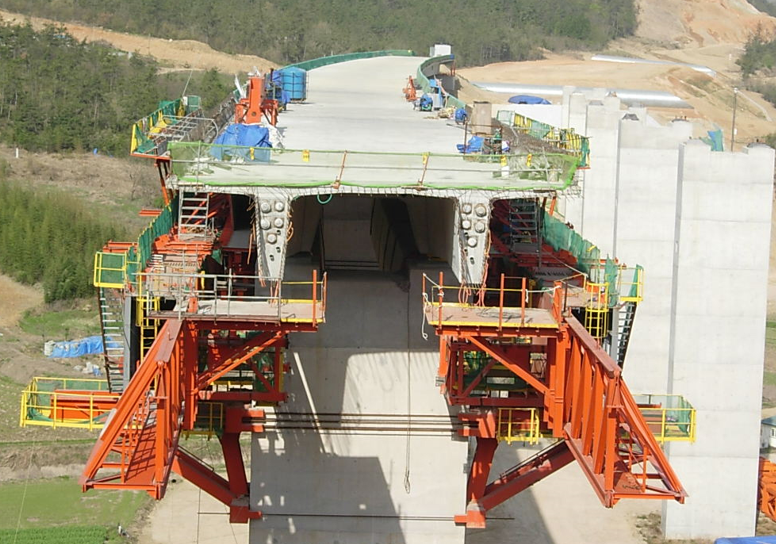 MSS공법은 Movable Scaffolding System의 약자입니다. Movable은 이동을 의미하며 Scaffolding은 비계를 의미합니다. 그래서 한국어로 이동식 비계공법이라고 부릅니다. 이 공법은 거푸집이 부착된 특수한 이동식 비계를 이용하여 상부 교량을 시공하는 방식입니다. 교량은 상부구조와 하부구조가 있는데요 하부구조에는 상부를 지지하는 교각과 교대가 있고 상부구조는 거더와 슬래브가 있습니다. 이 공법은 독일에서 처음 개발 되었는데요 1959년 독일의 KANG교에 처음 시공되었고 이후 많은 발전이 있은후 1970년대 초반 선진국에서도 많이 사용되었습니다. 국내 첫 도입은 1983년 1월의 노량대교에서 였으며 현재는 고속철도 교량 상부구조 시공에 많이 사용되고 있습니다. 특히나 경부고속철도 제 7-1공구 교량 상부 구조 시공용으로 노루웨이 Norconsult의 Struktruras-aas사가 설계했고 국내 현대정공에서 제작 공급한 MSS를 사용했다고 합니다.